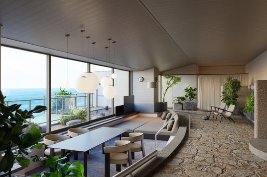 また内湯の名残を生かしつつ、リニューアルしたくつろぎのリビングルームなど、 非日常でありながら熱川の記憶とともに過ごす、どこか懐かしさのある空間です。