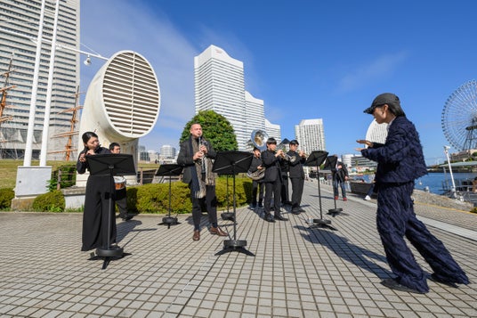 幼少期より教会で聖歌や合唱に親しむ一方、秋葉原の電気街で“オタクカルチャー”の影響を受けながら育った梅本は、ゲーム音楽の効果音とアコースティック楽器を融合させたライブ・エレクトロニクスや、アニメキャラクターのボイスサンプリングによるフィクストメディア(Fixed Media)と楽器の生演奏を同期させる手法など、自身のアイデンティティを反映させた複層的な作風が特徴です。2024年11月には、横浜みなとみらいホールと共に作曲家・本田祐也の楽曲再演プロジェクト「埋立地での音楽 汽車道パレード ―本田祐也と梅本佑利―」に取り組み、梅本による編曲・作曲作品を若手音楽家らがみなとみらいの街をパレードで練り歩きながら演奏するスタイルで披露し、注目を集めました。