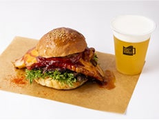 周年記念!ジャイアントスモークベーコンチーズバーガ 2,400円 / 周年限定ビール S 850円 M 1,200円 L 1,500円