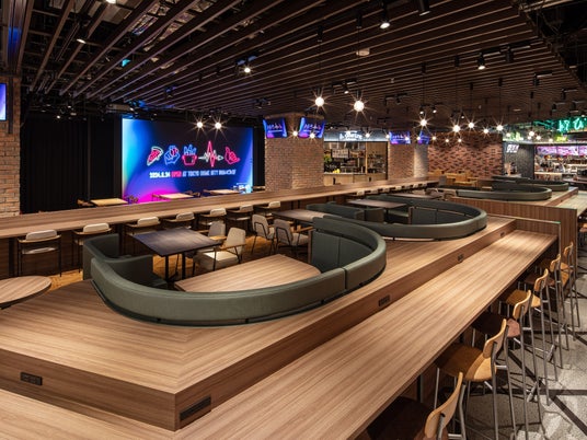 東京の真ん中に位置し、スタジアムの雰囲気を感じられる空間の中で、巨大LEDビジョンとモニターに囲まれながら、多種多様なグルメを楽しめる場所という意味を込めて「FOOD STADIUM TOKYO」と表現しています。