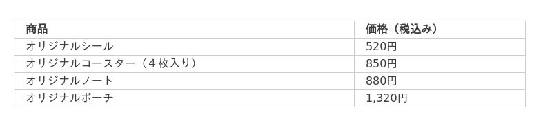 グッズ価格