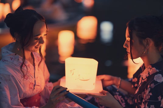 参加者は、願いを込めたメッセージをひとつひとつ手書きで灯ろうに記入し、船上から贈り灯として水面に流します。夜の水面に揺れる橙色の灯ろうが、見る人々の心をやわらかく包み込み、ご家族や大切な方との、かけがえのない思い出になることでしょう。