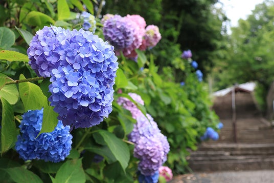 梅雨の訪れとともに高槻市内でアジサイが開花し、人々を楽しませています。平安時代の女流歌人伊勢ゆかりの伊勢寺の参道や本堂周辺、国の重要文化財「木造千手観音坐像」を所蔵する安岡寺の参道などで、紫、ピンク、白など色とりどりのアジサイが咲き始め、今後数週間にわたって楽しめる見通しです。