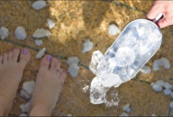 ASHIMIZUの小川に氷を投入する演出を今年も毎日行います。見た目にも体感的にも夏の暑さを吹き飛ばす“涼”をお届けします。