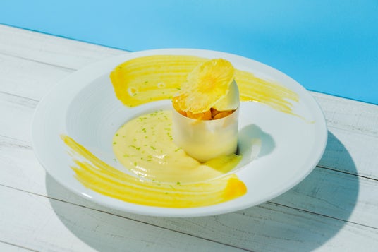 夏の花ひまわりをイメージしたデザート。パイナップルとココナッツで夏の味覚を。ライムとミントの爽やかな香りをお楽しみください。