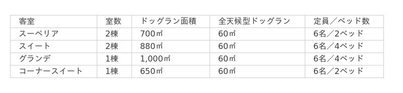 犬種・大きさ問わず、快適に思う存分楽しめる客室空間となっております。