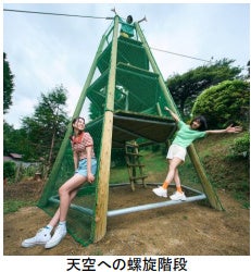 高さ約6mの螺旋階段のアスレチック。周囲は
