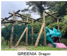「Mt.Kingdom」エリア内の一部アスレチックに「GREENIA Dragon」の足跡ペイントを塗装。