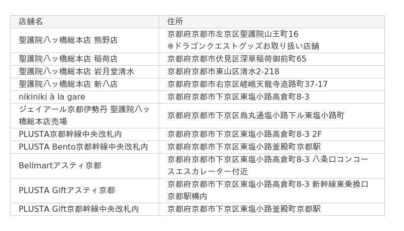株式会社スクウェア・エニックスは、スマートフォン向け位置情報RPG『ドラゴンクエストウォーク』(対応機種:iOS/Android)にて、株式会社聖護院八ッ橋総本店とのコラボレーション商品「リアルおみやげプロジェクト第七弾 スライム生八ッ橋(つぶあん入り)」のお取り扱い店舗が増えたことをお知らせいたします。お近くまでお越しの際は是非お買い求めください。