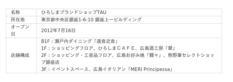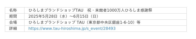 <ひろしまブランドショップTAU 有楽町出張イベント 開催概要>