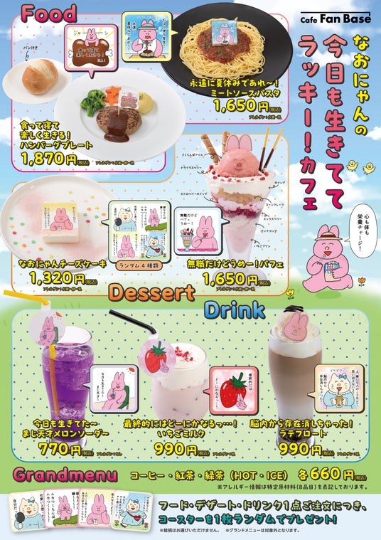 横浜・みなとみらい、ランドマークプラザ5階にあるコラボカフェ「Cafe Fan Base(カフェ ファンベース)」にて、2025年7月2日(水)~2025年7月16日(水)の期間限定で「心も体も栄養チャージ!なおにゃんの今日も生きててラッキー!カフェ」を開催いたします。