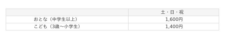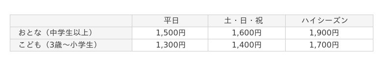 ■営業時間 10時00分~17時00分(最終受付時間 16時00分)■料 金(1名/1日)