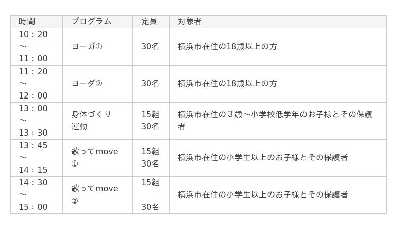 【主 催】横浜市にぎわいスポーツ文化局スポーツ振興課【連携企業】スポーツクラブ メガロス(野村不動産ライフ&スポーツ株式会社)