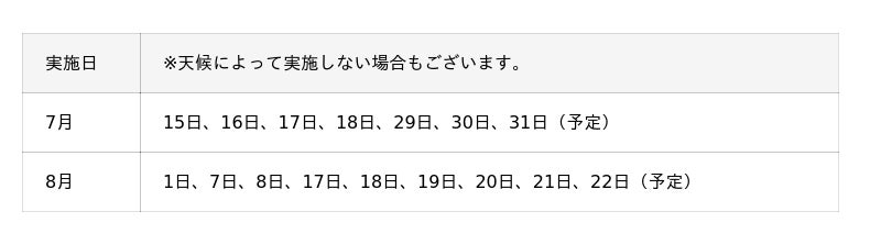 通常は毎週水曜・土曜の実施ですが、7・8月は特別開催日を設定して実施します!