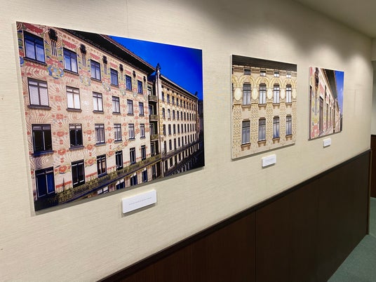 館内に掲示されているオットー・ワーグナーの作品を写した写真パネル