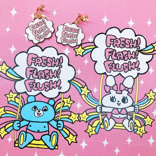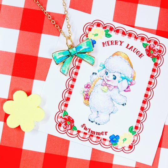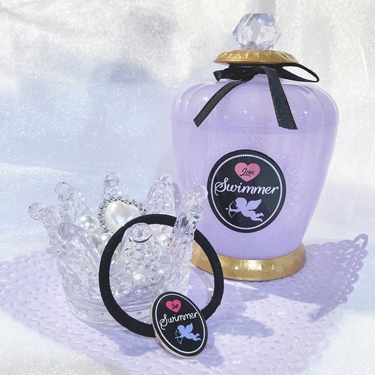 SWIMMERらしさ溢れるデザインの「POPOUT リボンネックレス」「POPOUT イヤリング」「パフュームボトルラベル ヘアポニー」を販売します。