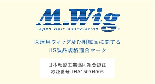 ※M.Wigマークは、JIS規格基準を満たす医療用ウィッグに対し、日本毛髪工業協同組合が認証し、付与するマークです。