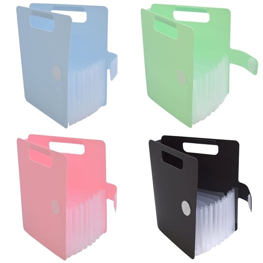 使いたいものが一目で選べて取り出しやすく、小さなお子様でも簡単にお片づけできるポケットファイル。中身が一覧できる自立式、出し入れしやすい幅広ポケット、持ち運びに便利なハンドルなど使いやすい工夫が満載です。シール、便箋、トレーディングカードなどの大きさがバラバラなアイテムもそれぞれポケットに入れて簡単に整理できます。