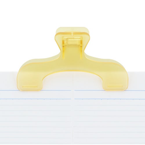 「ウカンムリ」の形が特長な見たいページをしっかりキープできるブックストッパー「ウカンムリクリップ」に新色が登場。2か所で真ん中を隠さず留めるので、書籍の内容が見やすくなっています。