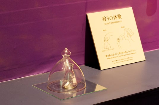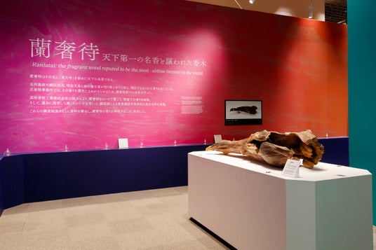 また、天下の名香「蘭奢待(らんじゃたい)」を科学的に分析して再現した香りを初公開しています。会場では、ガラスボールの中に閉じ込めて香りを展示、来場者に実際に香りを嗅いでいただくことができます。