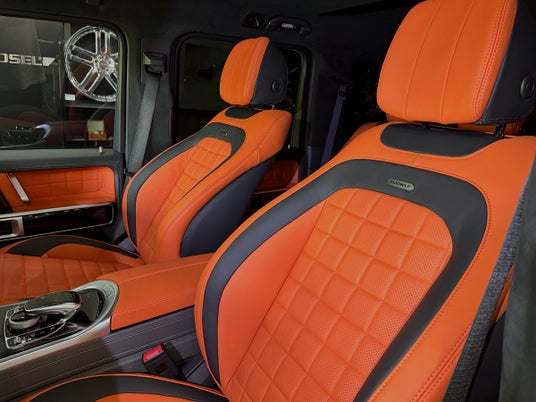 鮮やかな色彩がすべての人々を魅了する《MOSELカラメルレザー》は、大人の遊び心と重厚感を絶妙に融合させたカラメルカラーのレザーシートです。厚みのある高品質な本革は、極上の座り心地を誇り、さらにパネル周りも鮮やかなカラーで統一されており、所有者に唯一無二の満足感をもたらします。コンプリートカーならではの高級感と一体感をお楽しみいただけます。