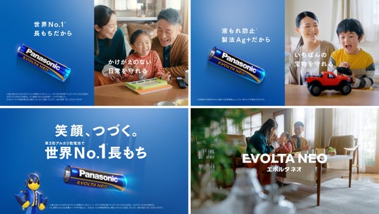このたびのリニューアルにあたり、パナソニック エナジーはエボルタNEOが今まで以上にお客様の大切な毎日のくらしを守り続けたいという想いを込めて、新たなコミュニケーションメッセージ「笑顔、つづく。世界No.1(※1)長もち」を掲げました。2025年6月19日より、そのメッセージを表現したエボルタNEOの新動画「笑顔、つづく。」篇を公開・配信します。