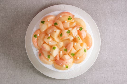ジューシーでとろけるような柔らかい果肉、口いっぱいに広がる上品な甘さと香りが魅力の桃を贅沢に散りばめた「桃のショートケーキ」。