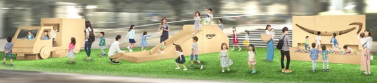 お子様とのお出かけスポットとしても最近人気のダンボール遊具を設置します。Amazonのスマイルマークの中にボールを入れて遊べる「ボールプール」、遊具には欠かせないすべり台「スライダー」などをご用意し、お子様連れのご家族の皆様に、一足早い夏の思い出づくりの機会をご提供します。