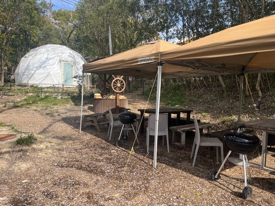 BBQはドーム前の専用屋外テーブルスペースで行い、アウトドアの開放感もしっかり味わえます。