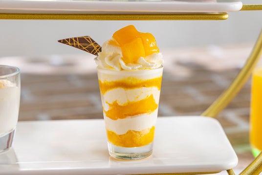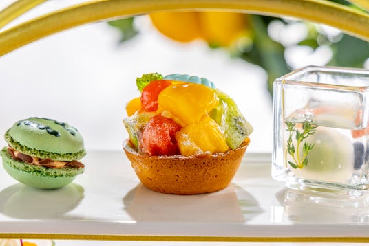 三段のアフタヌーンティースタンドに美しく配された彩り鮮やかなスイーツは、全9種がラインアップ。スイカやマンゴー、ココナッツなど夏を感じさせる旬のフルーツをふんだんに使ったシェフ特製のスイーツから、タルトやチーズケーキ、マカロンなどの王道スイーツまで、お子さまも飽きずに様々な味をお楽しみいただけます。また、塩気のあるピッツァや生ハムロール、夏でもさっぱりお召し上がりいただける冷製スープなどのお食事メニューもセイボリーとしてご用意しております。アフタヌーンティーに欠かせない紅茶はもちろん、オレンジジュース、メロンソーダなど30種類のソフトドリンクが飲み放題で、お子さま向けのメニューも充実しています。