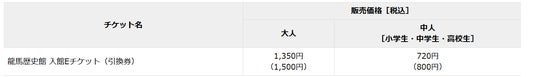 ・「龍馬歴史館」以外の入館チケットを追加で購入される場合には、現地窓口等で別途ご購入くださ