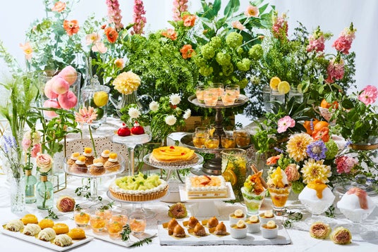 2階/オールデイダイニング<樹林>では、8月31日(日)まで「サマースイーツブッフェ」も開催いたします。“五感で楽しむスイーツガーデン”をテーマに、桃やマンゴー、メロンなど、旬のサマーフルーツを贅沢に使用した王道のタルトやショートケーキをはじめとした多彩なラインナップをお楽しみいただけます。パティシエがライブキッチンで仕上げるできたてスイーツや、自分で作れるサマーフルーツのクラフトパフェなど、夏のフルーツを満喫いただけるスイーツブッフェです。