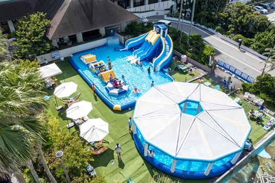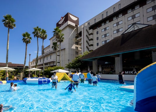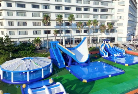 ホテルマネージメントインターナショナル株式会社(略称:HMIホテルグループ、本社:東京都中央区日本橋)が運営する、千葉県勝浦市の「三日月シーパークホテル勝浦」と千葉県鴨川市の「三日月シーパークホテル安房鴨川」では、夏の期間限定にて巨大アトラクションを設置したウォーターアイランドがオープン。今年も暑い夏は、夏空の下でアトラクションを楽しもう!