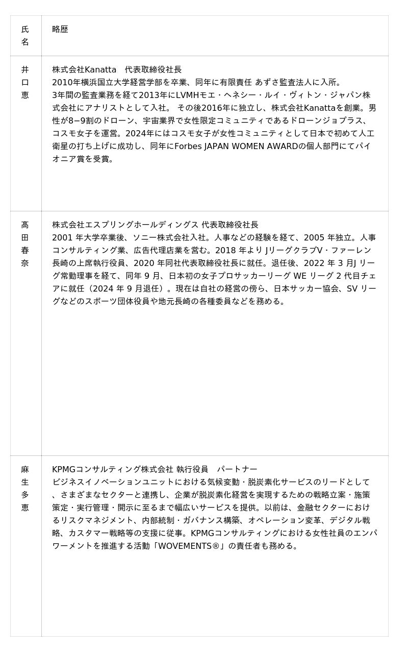 当コンテストは、持続可能な社会の実現に向けて、気候変動への対応をはじめ、さまざまな“サステナビリティ課題”の解決に関わる革新的なアイデアを持つ女性たちの支援を目的に開催するもので、2025年1月から募集を開始しました。52名から応募があり、1次審査(書類選考)および2次審査(オンライン面談・プレゼンテーション)を通過したファイナリスト5名が、会場の観覧者の皆さまに向けてプレゼンテーションします。