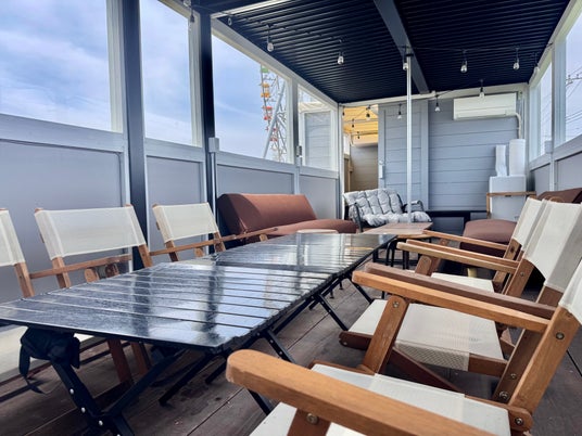 新設される日帰りBBQエリア「ルーフトップ個室キャビン」は、一棟一組限定の完全貸切スタイル。広々使える60平方メートル の広さで、愛犬の同伴も可能です。東京湾と観覧車を一望できる絶景ロケーションで、家族や友人とプライベートなひとときをお過ごしいただけます。