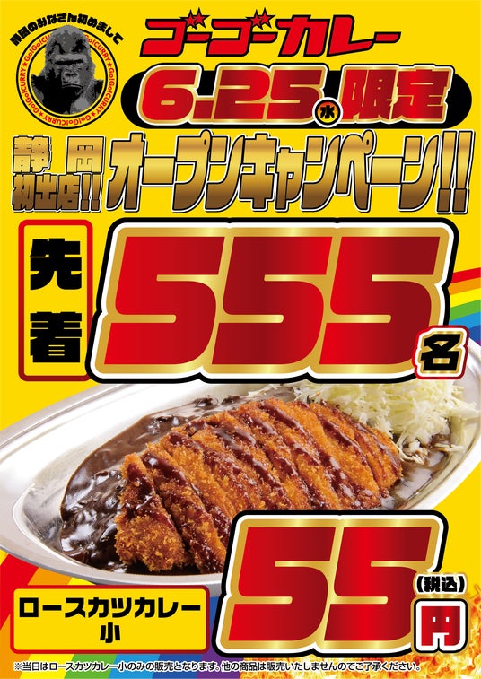 6月25日(水)のオープン当日、なんと先着555名様に「ロースカツカレー小」を税込55円でご提供!