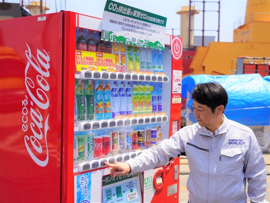 みちのくコカ・コーラボトリング、「カーボンオフセット自販機」の第一号機を設置