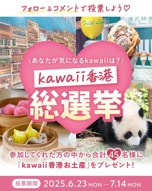 プロモーションのキックオフとして、本日6月23日より、香港政府観光局のInstagram上で投票キャンペーン 「#kawaii香港 総選挙」 を実施します。