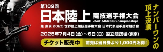 2025年7月4日(金)~6日(日)の間、国立競技場で行われる「第109回日本陸上競技選手権大会(https://www.jaaf.or.jp/jch/109/)」。