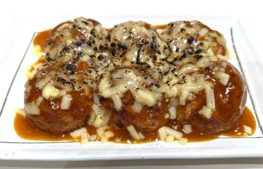 「ふじたま」カレーたこ焼き (6個入)580円カレーソースとチーズが引き立てる生地の旨さ。