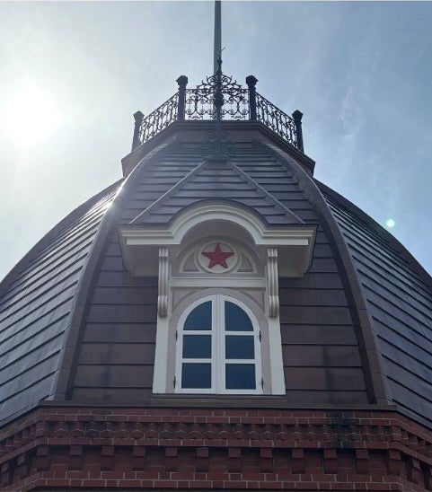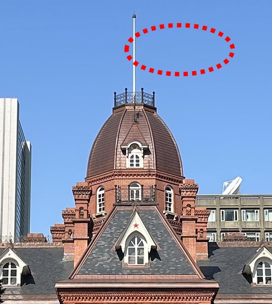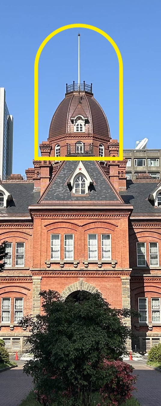 八角塔ドーム正面屋根窓にある開拓使のシンボルである五稜星も、1968(昭和43)年に復原