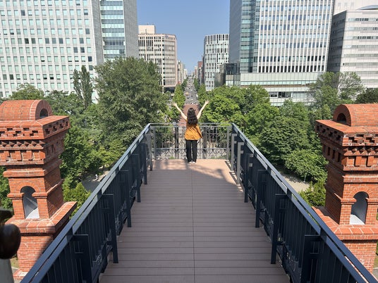 ・北海道発展の中心となった北3条通を目前にし、当時の姿を残す前庭と、近代的なビルとの対比が楽しめます
