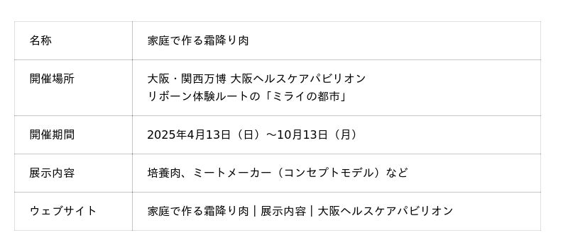 ・「培養肉未来創造コンソーシアム」の大阪ヘルスケアパビリオンでの展示概要