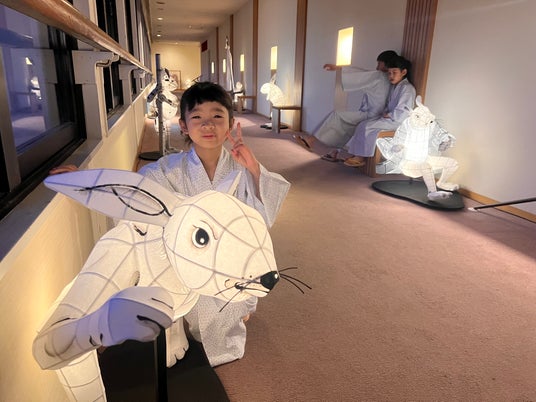 タワー館から大浴場へ続く通路を、ランタンアーティスト・三上正輝さんの鳥獣戯画ランタンで幻想的に演出。SNS映えも抜群のこの光の回廊は、ご家族の素敵な思い出を鮮やかに彩ります。ほかにも3m超の巨大な「雲ランタン」や音楽と香りに包まれた「ランタンアート空間」など、敷地内には夢と光の三上真輝さんの作品があふれています。二万坪の広大な敷地の散策をお楽しみください。
