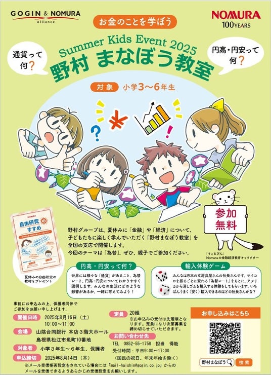 本イベントは、子どもたちに「金融」や「経済」の仕組みを楽しく学んでいただくことを目的として開催します。ゲームの中の輸入体験を通して、「為替変動」が生活にどのように影響するのかを考え、楽しみながら学ぶことができます。ぜひ親子でご参加ください。