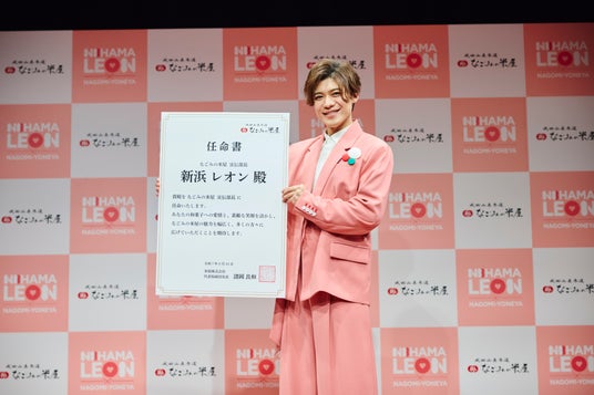 ▼宣伝部長に就任した新浜レオンさん、「レオン語」で意気込み全開