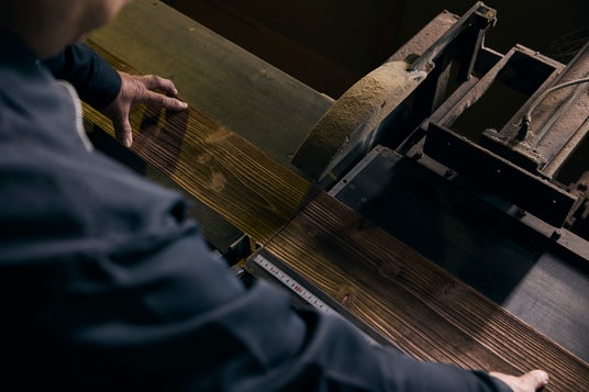 杉板の二面を火であぶり浮造り加工を施し、表面全体を炭化し、耐久性・耐腐食性を高めています。
