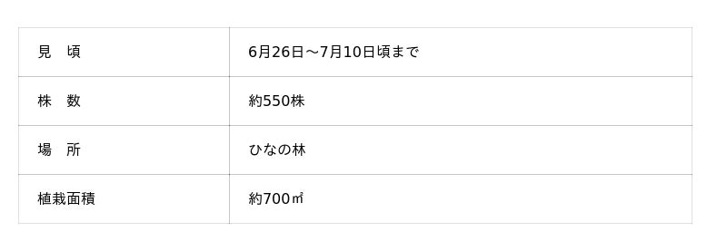 ひなの林近くのみはらしの丘では、コキアの植え付けが進んでいます。今年も約4万本のコキアが、みはらしの丘にきれいな緑のラインを描くように並びます。小さな“赤ちゃんコキア”が、広大な丘に一本一本手作業で植え付けられていく風景は、当公園の初夏の風物詩となっています。コキアの植え付けは7月4日(金)頃までに完了する見込みです。