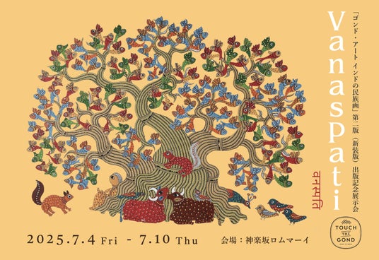 想像上の生きものを含めた森の動植物、神話や寓話などをテーマに描かれた作品は、発想力豊かな構図と、モチーフのなかに敷き詰められる細かく美しいパターン模様が特徴です。ときにユーモラスにも感じられる表現はモダン・アートとしても近年評価が高まっております。本書は、開く際に妨げなく作品を楽しめるように、コデックス装の製本を採用しております。画家から一つ一つ聴き取った作品にまつわるストーリー、制作背景についての解説も充実しており、ゴンド・アートのファンはもちろん、初めてその魅力に触れる方にも最適な一冊です。この度、刊行を記念して、神楽坂のギャラリー、Rom maai ロム マーイ(東京都新宿区)にて展示会を行います。編者のTouch the GONDが新たにインドから持ち帰った新作がたくさん並びます。イベントも企画しておりますので、ぜひお出かけください。その後ジュンク堂書店池袋本店でも展示を予定しています。