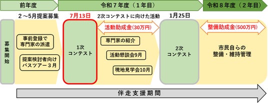 ※『生麦事件参考館リユースプロジェクト』は令和6年度2次コンテストで基準以上の得票があったため、令和7年度1次コンテストの審査は免除になります。コンテストの冒頭で昨年度からの取組の経過報告等を行います。